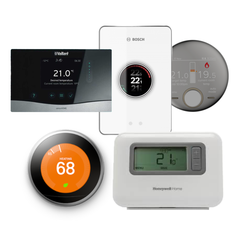 The lowest priced option and also most common is a boiler plus level programmable thermostat with load compensation. Load compensation allows the boiler to modulate the flow temperature from the boiler based on the actual room temperature. We usually recommend Honeywell T3R & T6R programable thermostats.